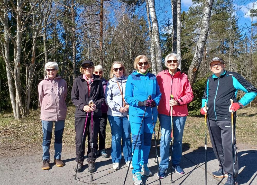 *Kävelijät kokoontuvat Olarin pururadalla.