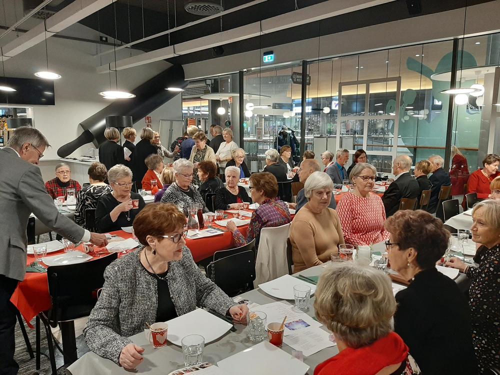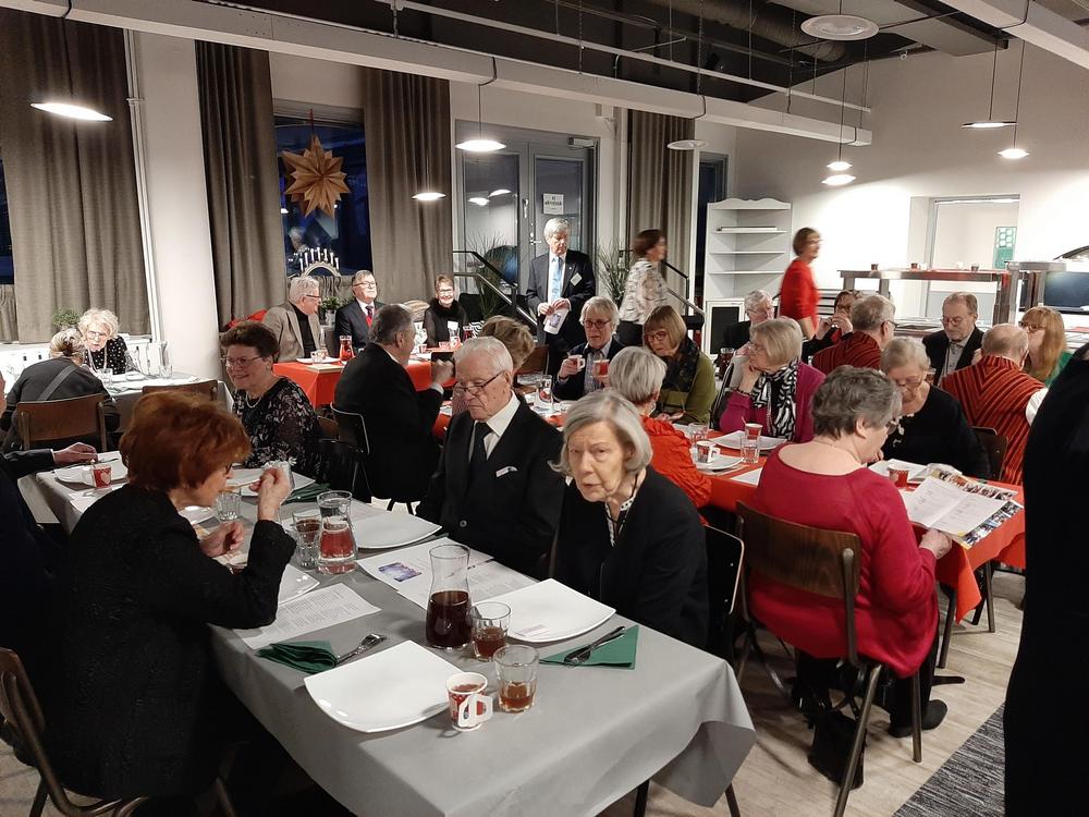 Meillä oli iloinen joulujuhla ja Pirttihirmun henkilökunta oli laittanut salin jouluiseksi ja tarjoili maistuvaa ruokaa.