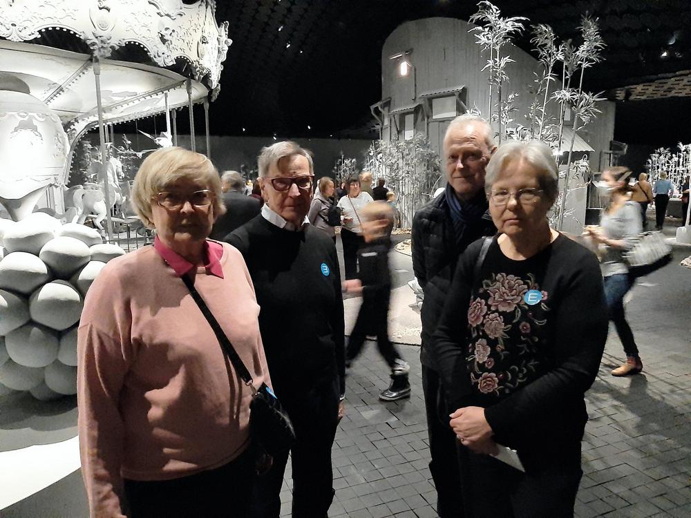 Mielenkiintoinen, hämmästyttävä näyttely. Tässä osa ryhmästämme odottelee sisään pääsyä.