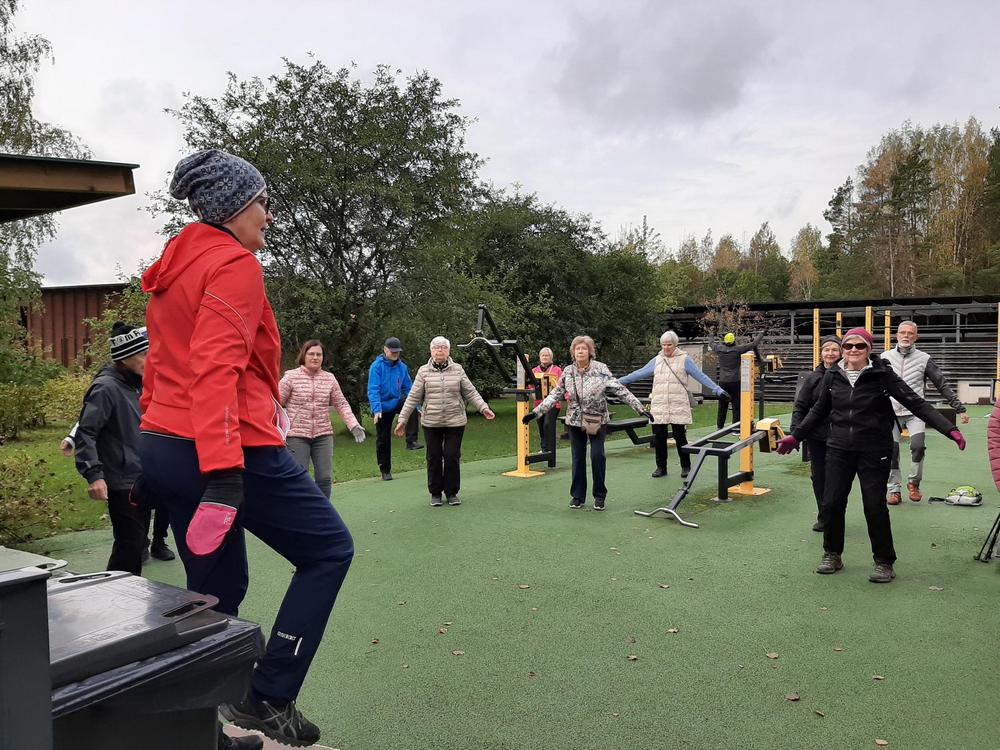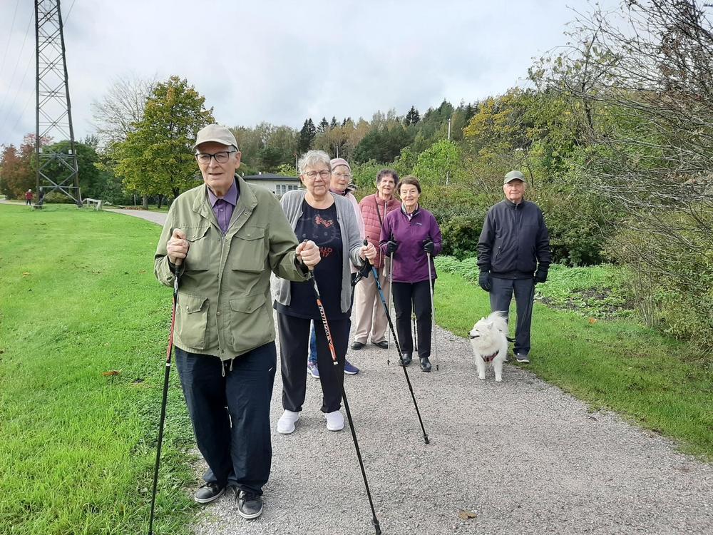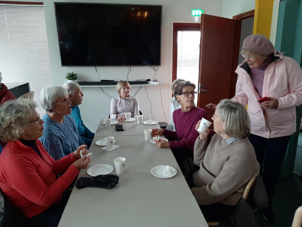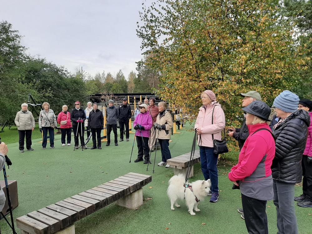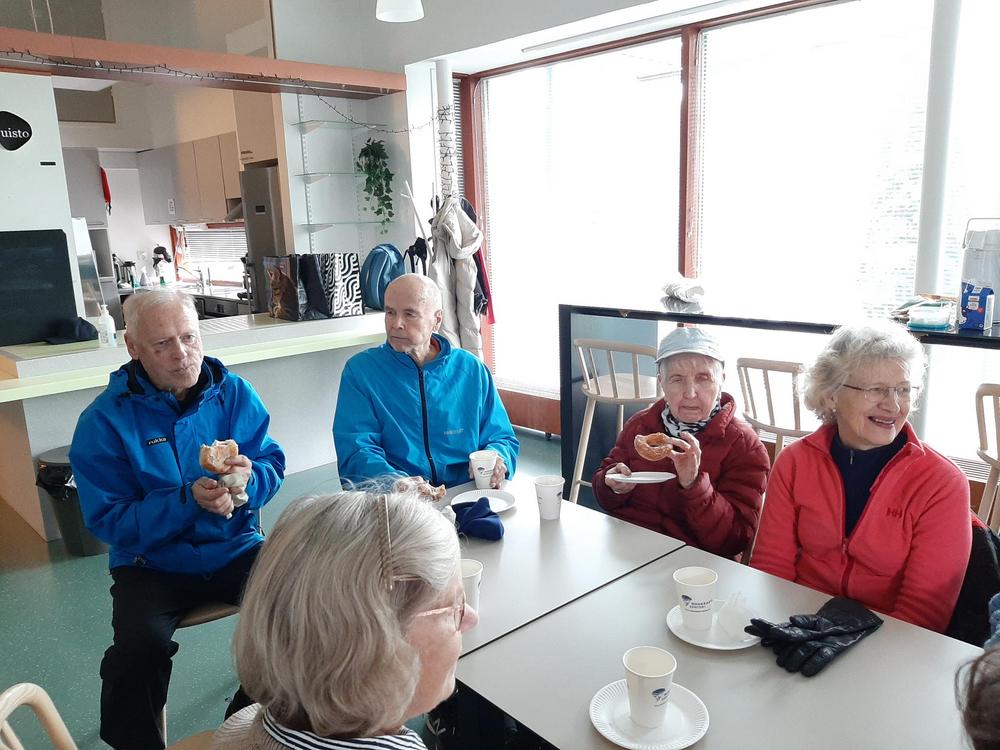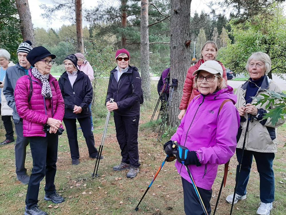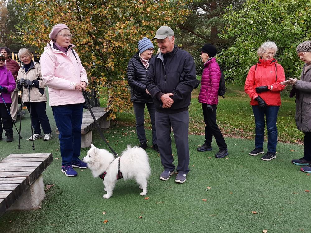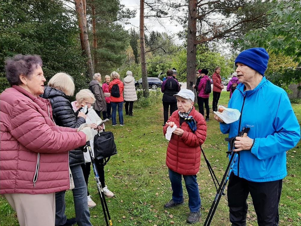 Jälleen oli reipasta menoa vaikka ruskan värejä olikin viime syksyä vähemmän. Retken päätteeksi maistui makkara ja kahvi munkin kera.
