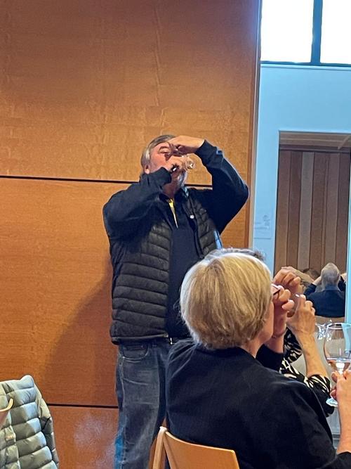 Juha Berglund opasti okasilaisia viinien maisteluun. Hän omistaa tyttärensä Nean kanssa viinitilan Chateau Carsin Bordeauxissa.Siis "viiniä suuhun, ilmaa suuhun jne"