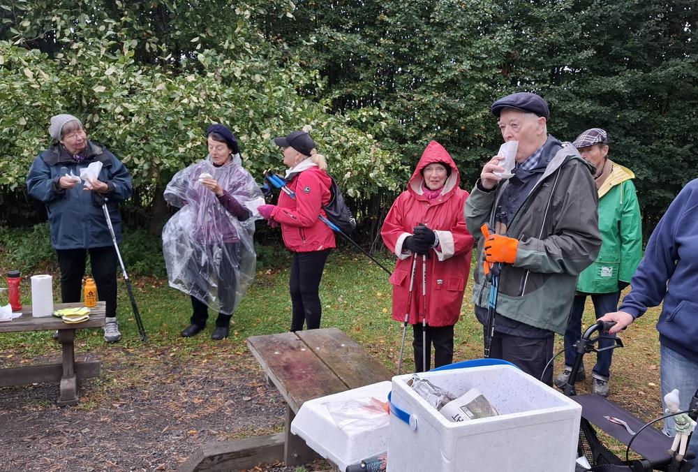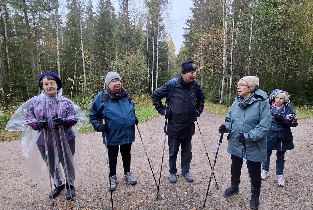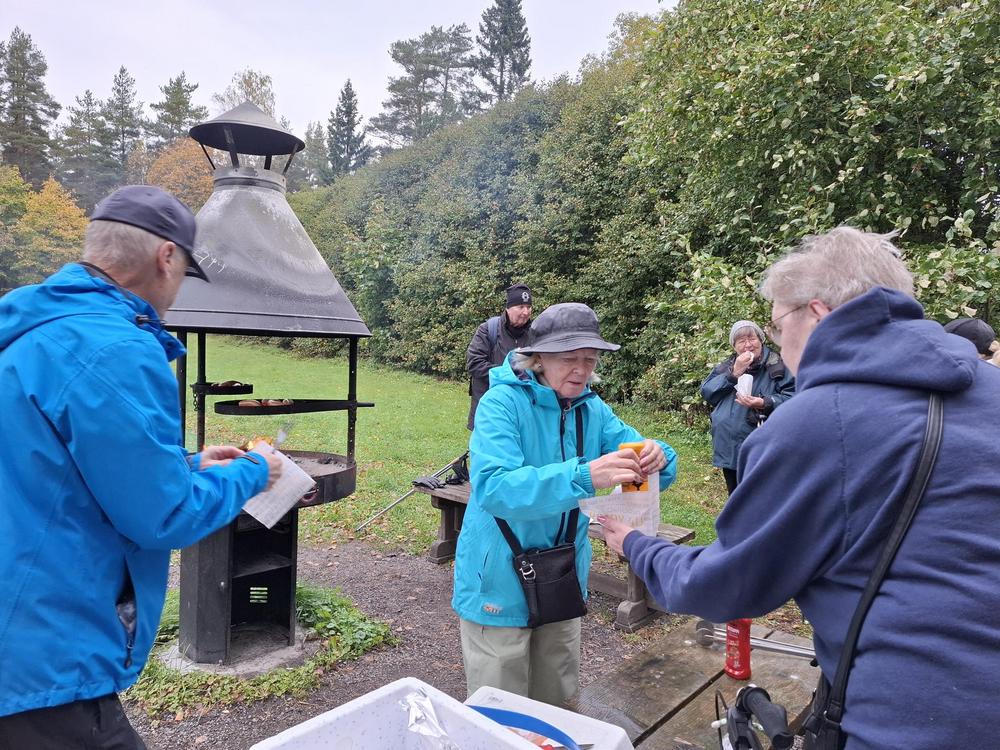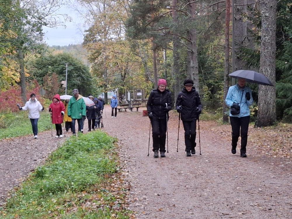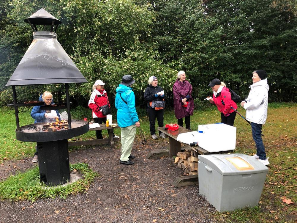 27 jäsentä lähti reippaasti metsälenkille Puolarmaarin ulkoilualueella. Välillä hieman ripotteli ja välillä ei. Metsä oli hapekas ja inspiroiva. Lopuksi vielä paistettiin makkarat ja nautittiin kahvit. Tämän jälkeen Riitta esitti perinteiseen tapaan runoja, jotka liittyivät syksyyn. Olipa kiva iltapäivä.