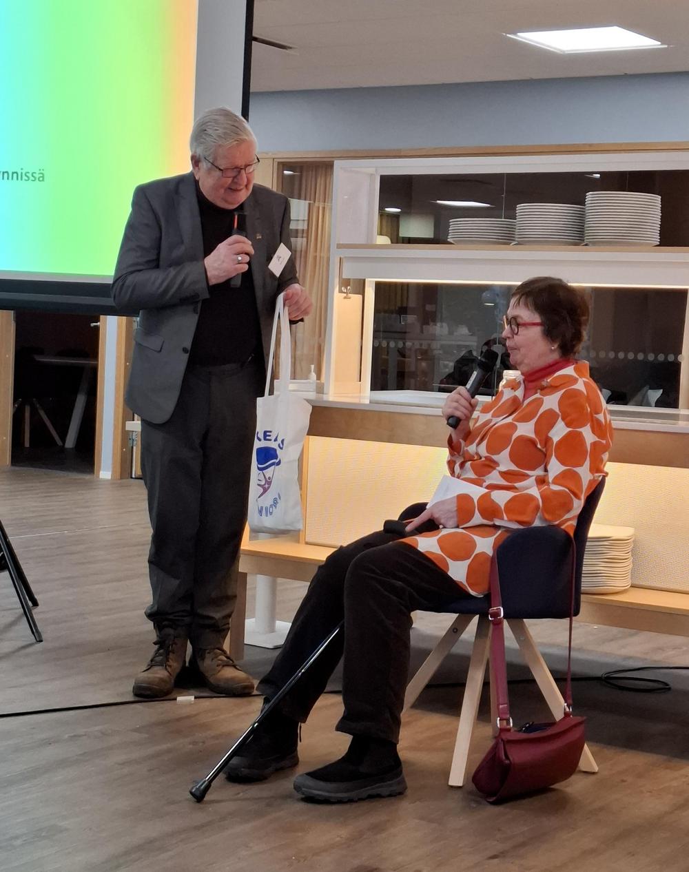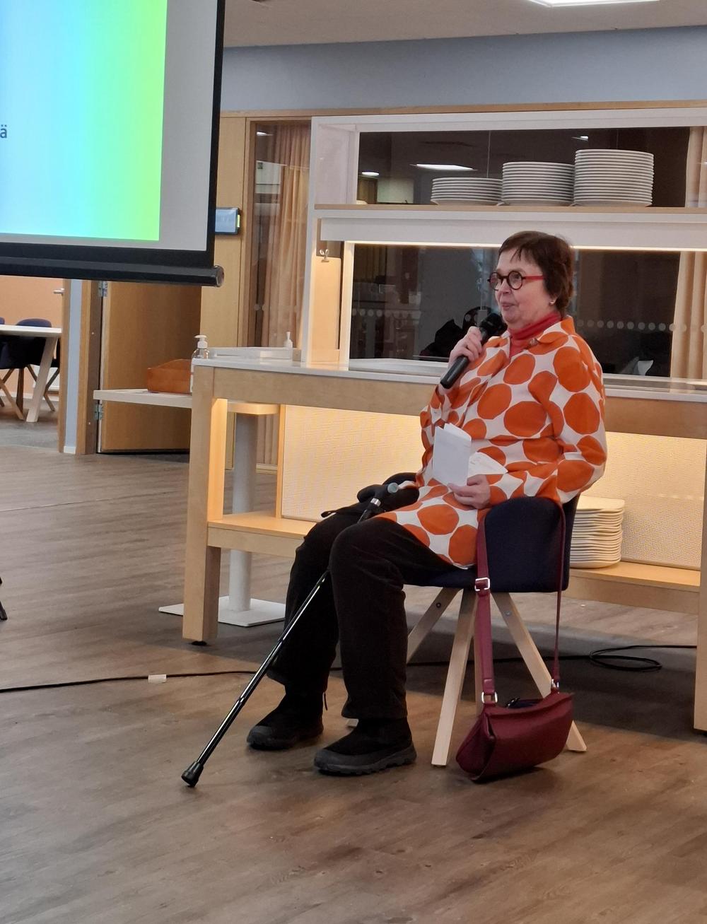 Kati Tervo kertoi lapsuudestaan Finnåssa, koulunkäynnistä Friisilässä ja elämästään Olarissa sekä myös kirjoittamisesta.
