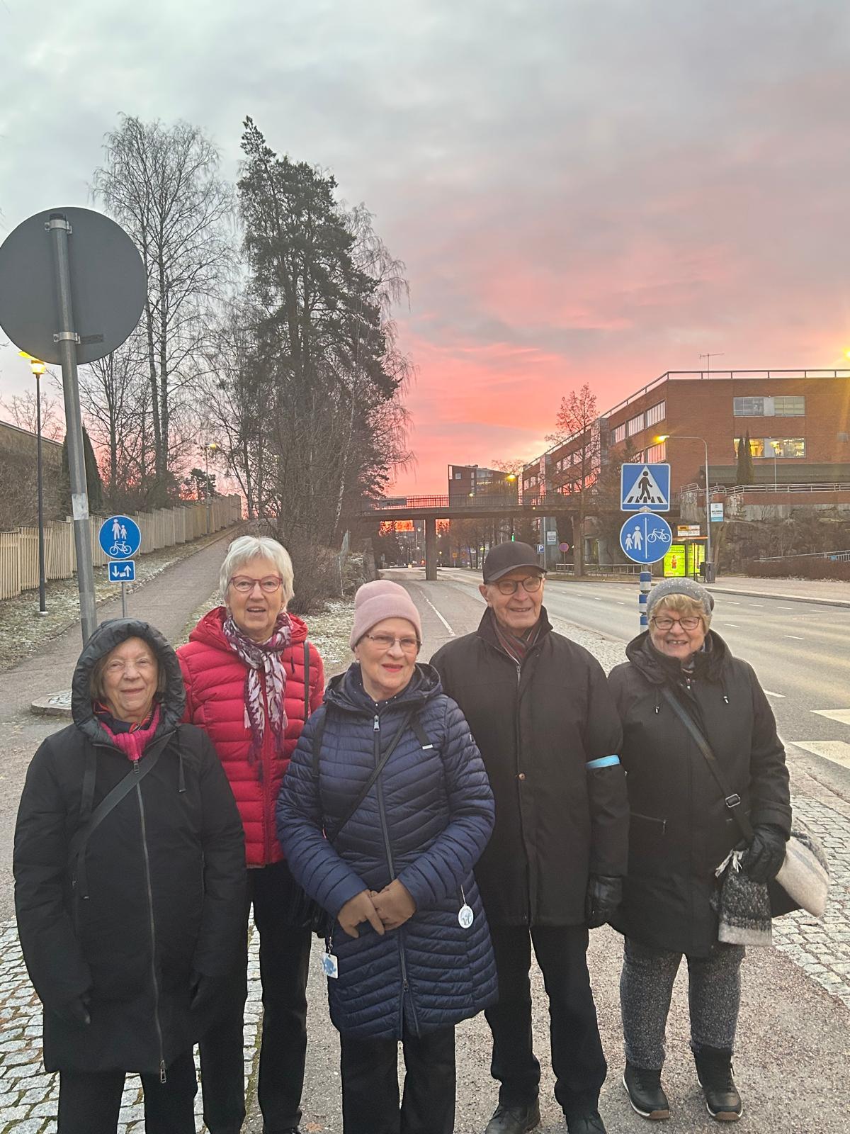 Bussia odotellaan aamuruskon punerruksessa. Kuva EN.