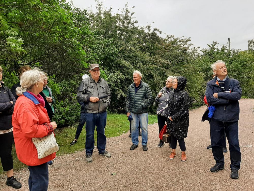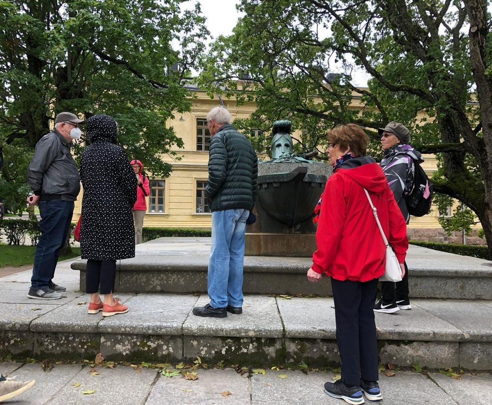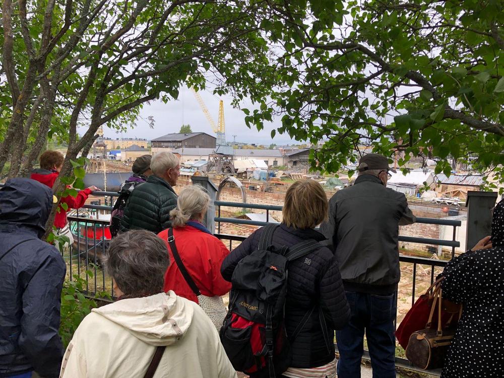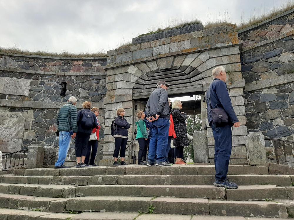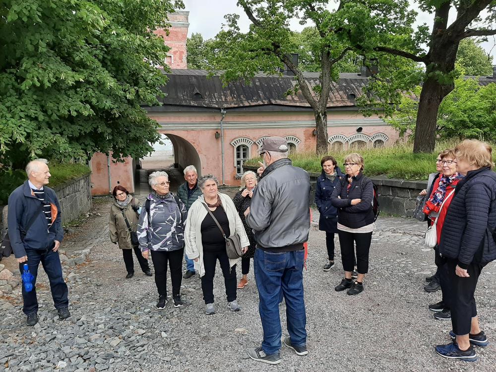 Päiviö Salo johtaa joukkoaan. Saimme kuulla historiaa ja tapahtumia Päiviön lapsuusajoilta Suomenlinnassa. (JS)