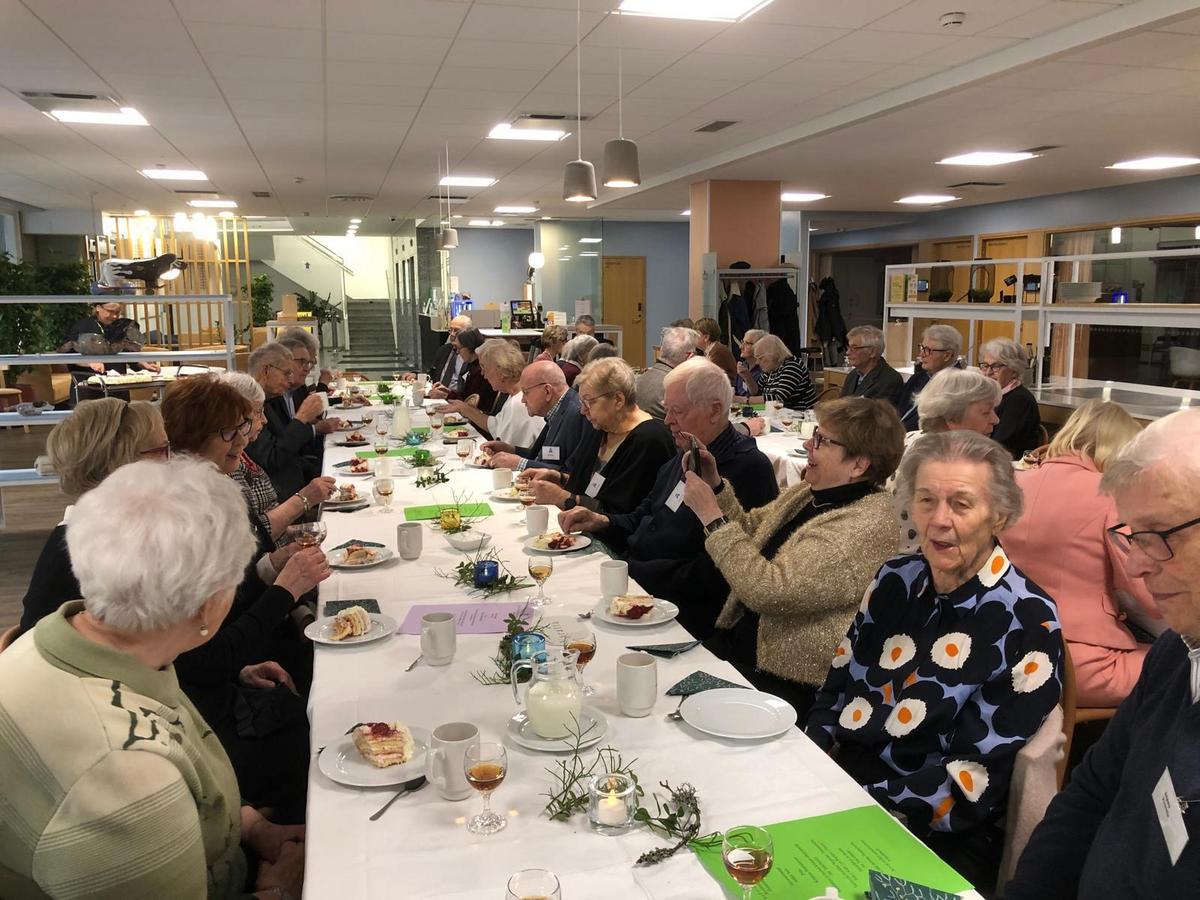 Olarin kansalliset seniorit jatkoivat vuosi sitten aloitettua perinnettä: kaikki jäsenet, jotka olivat täyttäneet 85 vuotta kutsuttiin kahveille ja sherrylle ohjelmalliseen iltapäivätilaisuuteen Kompassin tiloihin. Paikalle oli päässyt kuudestakymmenestä 85 vuotta täyttäneestä jäsenestämme 47.